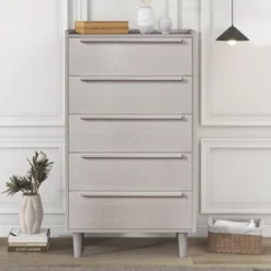 Clio Manufactured Wood Vertical 5-Drawer Chest With Solid Wood Legs Accent Cabinet-Maison Boucle