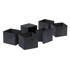 7pc Capri Set Storage Shelf With Folding Fabric Baskets Espresso Brown/BLack – Winsome
