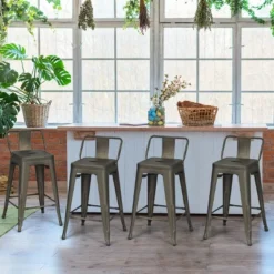 Costway Set Of 4 Low Back Metal Counter Stool 24” Seat Height Industrial Bar Stools GunBlack