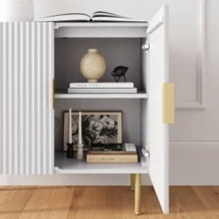 Vera Wood Fluted Storage Cabinet Matte White/Gold – Nathan James