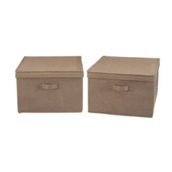 Household Essentials Set Of 2 Jumbo Storage Boxes With Lids Latte Linen