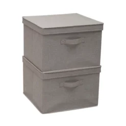 Household Essentials Set Of 2 Square Storage Boxes With Lids Silver Linen
