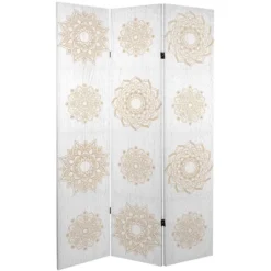 6″ Double Sided Mandala On Birch Canvas Room Divider Beige – Oriental Furniture