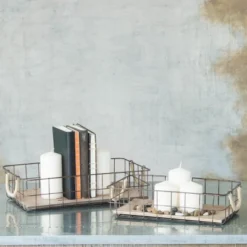 Bring a rustic feel to your home decor with Stonebriar’s 2pc rectangle rustic wood and metal basket set. Large basket measures 16.7″L x 10.2″W x 4″H. Small basket measures 14.7″L x 8.4″W x 4″D and can easily nest inside the larger basket. Each basket features a lightly distressed natural wood base with a rustic metal wire frame. The attached metal handles make it easy to carry the baskets from one room to the next. Add your favorite pillar candles and orbs to make a bright decorative table centerpiece. Baskets can also be used to create a rustic coffee or drink bar. Display your Stonebriar rustic wood and metal basket set by itself or mix and match with other Stonebriar decor accessories.