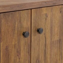Organize your entryway, mudroom or living space with this gorgeous acacia wood shoe cubbie. The shoe cubbie cabinet is both beautiful and functional, providing ample storage and style for your home’s entryway or hallway. Made from solid acacia wood, the natural aged stain highlights the subtle imperfections such as knots and cracks that are part of the wood’s character. Behind the two doors are three adjustable wire shelves to keep shoes from cluttering your floors. The cubbie cabinet can also be used for books, scarves, gloves or other accessories.