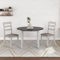 3pc Jacy Drop Leaf Round Dining Table And Chair Set Brown/Oyster – Room & Joy