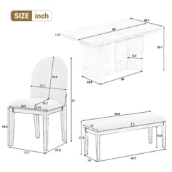This 6-piece dining table set contains 1 dining table, 4 matching chairs, and 1 bench. It can seat 6 people and can well accommodate your family members and guests. Having a large surface, the 1.3″ thick table leaves enough space for you to advantageously place fruit bowls, vases, candles, etc., and it won’t be crowded. With the appearance of natural marble, the faux marble sticker-covered table highlights the beautiful and natural texture. Refreshingly austere and simple in design, this dining set embodies the modern and minimalist style, which can add a touch of elegance to your dining room, kitchen area, or home bistro.
