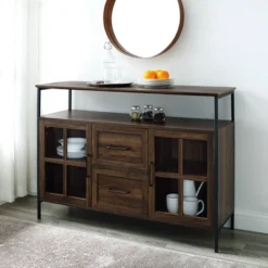 Adonis Transitional Industrial 3 Door Tiered Buffet Dark Walnut – Saracina Home