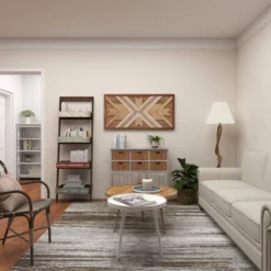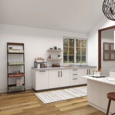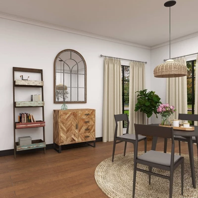 - •This farmhouse 4-tier leaning shelf features a rectangular frame with rectangular wooden drawers