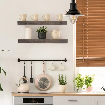 Whether used to store books or as a display shelf for mementos, keepsakes, figurines or photos, with this piece you’ll have ample space and opportunity to clean up clutter and manage messes around the home. Create wonderful storage solutions for your home with this floating shelf that hides unsightly brackets and keeps your wall space looking clean, tidy, and clutter-free. Medium-density fibreboard (MDF) with a walnut brown finish gives this piece a truly rustic, vintage, farmhouse style aesthetic. Perfect for your living room, bedroom, bathroom, garage or kitchen, this floating shelf really works in a variety of home decor situations for a variety of purposes. Whether for storing bathroom necessities, kitchen essentials, or for photos, plants and other design and decor accents and accessories, this shelf offers a multitude of functions. Fully equipped with a mounting bracket, drywall anchors and screws, this floating shelf also includes instructions for hanging.