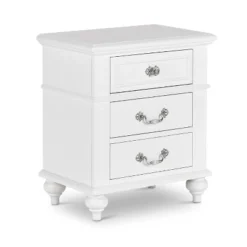 The Picket House Furnishings Annie 3-Drawer Nightstand is the perfect bedside addition to your bedroom! This nightstand comes with three, spacious drawers; perfect for keeping all of your bedside belongings within reach. The bottom drawer features a dust proofing bottom to help keep all of your belongings in great condition. The crystal-like drawer handles and knob add an extra layer of style to this already stunning piece. Bevel edges and a clean, crisp white finish complete the look of this transitional design.
