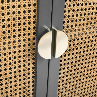 This traditional Amerian style cabinet keeping clutter under control effortlessly provides a perfect choice for you. Boasting a stream-lined appearance, this attractive work of art is a wonderful combination of MDF+ash wood veneer+pine legs,, ensuring a long life with perfect stability and durability. Being a considerate companion to your home decor, it’s hand-painted and incorporates special rattan woven, simulated wood patterns and retro elements on its surface, turning your room into an elegant and textured place instantly and best to show your noble taste. Simply open its double doors to reveal hidden areas, 1-shelves inside provide ample storage to sort out daily essentials conveniently, while the optional neutral hues make this stylish cabinet ideal to blend with your home decor in every style, helping you to create functional living room, dining room or bedroom storage.