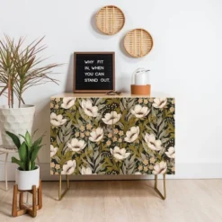 Avenie Floral Meadow Spring Green Credenza – Deny Designs