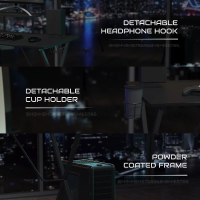 Gaming Desk & Chair Set – Reclining Gaming Chair with Slide-Out Footrest & Gaming Desk with Cupholder/Headphone Hook Additional Features: X-Shaped Powder Coated Frame, Detachable Cupholder/Headphone Hook, Cable Management Grommet