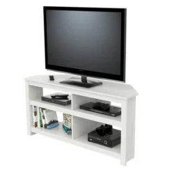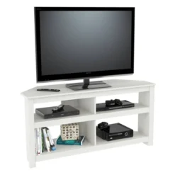 - This modern designed TV stand has a very functional contemporary shape to accent your home décor.