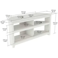 TV Stand by Inval finished in a rich “Washed Oak” laminates in durable melamine which is stain, heat and scratch resistant. This modern designed TV stand has a very functional contemporary shape to accent your home décor. It can accommodate up to a 60″ flat-screen TV. The open shelf design allows you to showcase your electronics and maintain your media accessories organized.