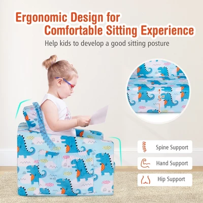 This cute and eye catching kids sofa is a great addition to kids room, playroom, living room and kindergarten.