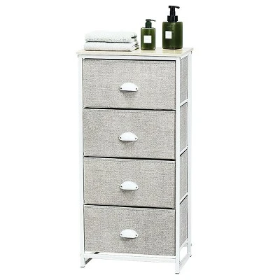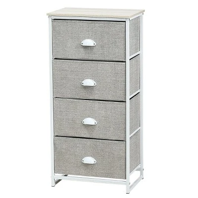 Are you still upset about the messy things? This drawer storage unit is your ideal option. Our beautiful and powerful 4 tier chest of drawers has a rectangle shape and can make your room full of charm. Made of sturdy and durable steel frame and thick medium density fiberboard, this drawer storage unit is solid enough to serve a long time. This chest of drawer comes with 4 folding fabric bins, which provides plenty storage space for you. It can be used in a variety of situations, whether it’s a bedroom, living room, office, dorm or even a closet, you can place it for storage. Even, you can use it as a coffee table.
