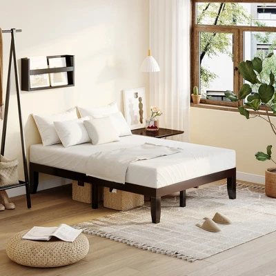 - User-Friendly Details: With 14โ raised height, the bed frame has roomy space underneath. Therefore, you can store multiple items under the bed, such as luggage, suitcases, outdated items and so on. The spacious underbed space also allows a robot cleaner to pass through for simple maintenance. Additionally, you can directly put the mattress included on the frame without box spring.