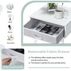 This elegant nightstand with a fabric drawer provides a stylish storage for you. It is made of high-quality boards and pine wood to ensure the stability and durability for long term use. And the unique structure and solid wood legs offers powerful supports and high weight capacity. Besides, the large fabric drawer with handle can be opened and closed smoothly and quietly. You can use it to store some personal items or use it as a storage box in other places. The spacious tabletop can display some potted plant, photo frame, lamp, clock, etc, which help you keep the room clean and neat. What’s more, the vintage and elegant style allows the bedside table to fit other furniture in your bedroom, living room or anywhere you need. If you are looking for a nightstand like this, do not miss it.