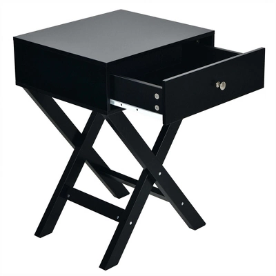 If you are looking for an attractive nightstand, our product will the best choice for you! This side table has a drawer for hidden storage and a tabletop for open storage, so there is ample space to store items. Besides, the nightstand is made of premium MDF material, which is durable for a long-term use. In order to improve the overall stability, legs of the table are specially designed in the shape of X. In addition, humanized knob and smooth drawer slides let you pull out the drawer easily. This versatile table can be placed not only as a bedside table in the bedroom, but also as a side table next to the sofa in the living room.