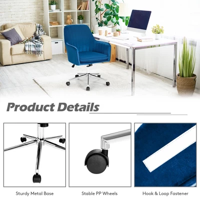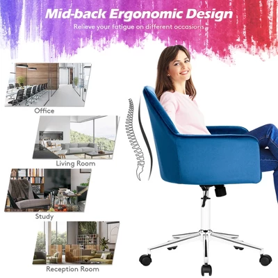 Costway Velvet Accent Office Armchair Adjustable Swivel Removable Cushion PinkBlueGrey
