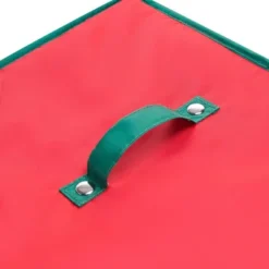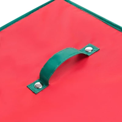- PRODUCT DETAILS- Material: Polyester, Cardboard and Nylon. Dimensions: (L) 13.25″ x (W) 11.25″ x (H) 31.75″. Divider Pockets are 2.25″ Square. Holds up to 20 Rolls of 30-Inch Wrapping Paper. Color: Red with Green Trim.