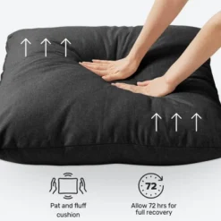 - Comfortable Seating Experience. Ergonomically designed sling seat provides exceptional comfort and support, customize the comfort and style with easily removable back and seat cushions. The cushions are filled with shredded foam that will conform to your body curve. Pat and fluff cushion, allow 72 hrs for full recovery