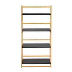 55.5″ Modern 4 Shelf With Metal Bar Room Divider Bookcase Coastal Oak/Black – Saracina Home