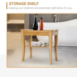 - PORTABLE AND EASY TO ASSEMBLE: With dimensions of 19.75″ L x 10.25″ W x 17.5″ H, HomCom’bamboo wood shower bench is a compact bathroom item with rounded corners and recessed screws for safety.