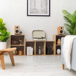 - Cubed bookshelf for organization and display of a variety of items.