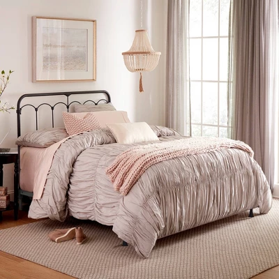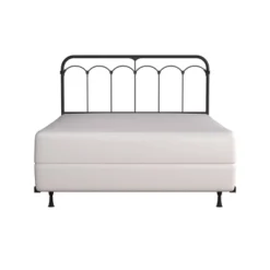 Industrial in inspiration yet fresh in its execution, the Jocelyn headboard turns a metal headboard with simple curves into something romantic. Constructed of metal with a black speckled finish, the Jocelyn headboard has an airy design reminiscent of picket fences. It is available in twin, full/queen and king sizes. The metal bed frame is included. Requires a mattress and box spring.