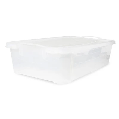 Keep your life clean and organized with the Life Story Clear Box storage container. This package includes 6 34-quart boxes.The 34-quart tote is ideal for storing items from clothing to craft supplies and is slim enough for under the bed storage. The see-through plastic allows you to see what is inside the box without having to open multiple containers. The storage totes are also stack-able, which helps to free up even more space in your home, garage, car, or RV. Organize your bedroom to your storage room with the Life Story clear box storage container.