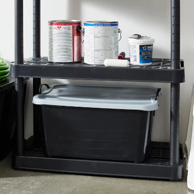 - STACKABLE: Stackable design allows each bin to sit on top of the other to maximize storage space in basements or garages; Dimensions (L x W x H): 23.6 x 12.3 x 16.9 inches