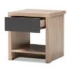 - Non-toxic, matte black laminated particleboard and contrasting gold feather or silver drawer pull allow you to customize the look of the Nightstand. Metal drawer slides have built-in stops for safety
