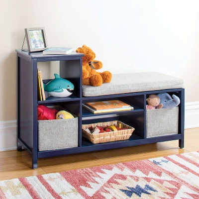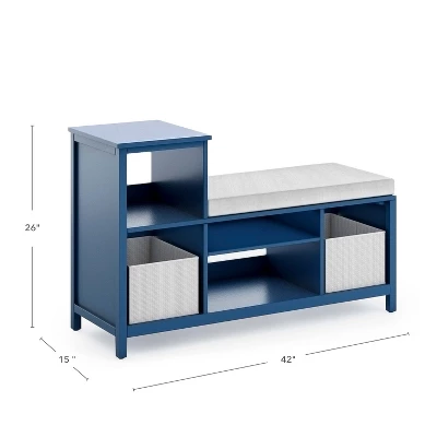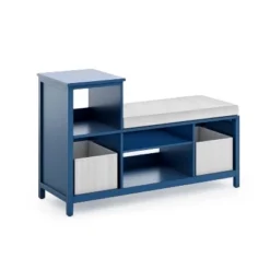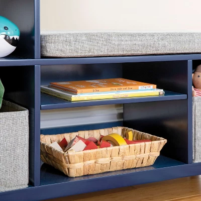 Convenient open storage combine with comfort in this cozy Martha Stewart Kids’ Jr. Reading Nook with Bins. The unique, low profile design fits perfectly in any young child’s bedroom or playroom. Kids can cuddle up on the comfortable, cushioned seat with their favorite story. Keep special toys and books close by and organized using the variety of storage shelves and two included fabric bins.