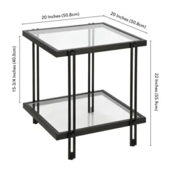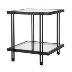 Complete your living room or bedroom ensemble in modern style with this contemporary side table. Crafted of premium steel hand-crafted in a blackened bronze finish, this end table features a clean-lined rectangular silhouette on four straight legs. The open lower glass shelf is great for housing books, magazines, and extra belongings. This table has a 30 lbs. weight capacity.Features : Hand crafted blackened bronze finish is applied to the steel frame.Clean with a soft, dry cloth; no harsh chemicals or abrasive cleaning materials.Features easy assembly.Weight capacity can support up to 30 LBS.Premium materials have been used in the making of this productSpecifications : Product Weight : 23.3 lbsTarget Audience : All AgesFrame Material : Metal