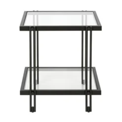 Complete your living room or bedroom ensemble in modern style with this contemporary side table. Crafted of premium steel hand-crafted in a blackened bronze finish, this end table features a clean-lined rectangular silhouette on four straight legs. The open lower glass shelf is great for housing books, magazines, and extra belongings. This table has a 30 lbs. weight capacity.Features : Hand crafted blackened bronze finish is applied to the steel frame.Clean with a soft, dry cloth; no harsh chemicals or abrasive cleaning materials.Features easy assembly.Weight capacity can support up to 30 LBS.Premium materials have been used in the making of this productSpecifications : Product Weight : 23.3 lbsTarget Audience : All AgesFrame Material : Metal