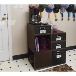 Let your creativity run wild with Cubo! These innovative storage cubes by Niche are designed to fasten together in any direction! Connect them in any way you like. In a row, in a pyramid, in a U or L shape or countless other configurations. Start small and add on later. Cubes connect to one another with spring pins, making it easy to customize and create a storage system just for you with a single cube to a set of 12 or more. Niche storage cubes are actually cubes! With interior dimensions of 12 1/8″ x 12 1/8″ x 12 1/8″, they can be used in any direction. There’s no “right” way to use them because all sides measure the same! Who ever said all cubes had to face the front like a bookcase? Cubo storage cubes can attach together in any direction, which opens up a myriad of new design possibilities. Turn one to the right, turn another to the left. Keep one facing front and still another facing the back. Perfect to clean up clutter in closets, entryways, laundry & storage rooms, as a bookcase, nightstand or media storage, in a classroom or children’s room-these cubes fit anywhere! Its rich dark Truffle finish shows subtle wood grain and is sure to please and coordinates with the rest of the Niche line. No tools LockDowel assembly allows pieces to simply snap together and lock into place for a sturdy, hassle-free build in less than 2 minutes. No more searching for the right size screwdriver or dropping tiny screws. Just snap into place and go. Less hardware and fewer small parts means less plastic packaging and less waste. Add on, arrange and rearrange Niche Foldable Fabric Bins for a fresh, new custom look whenever you like!
