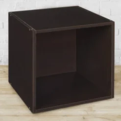 Let your creativity run wild with Cubo! These innovative storage cubes by Niche are designed to fasten together in any direction! Connect them in any way you like. In a row, in a pyramid, in a U or L shape or countless other configurations. Start small and add on later. Cubes connect to one another with spring pins, making it easy to customize and create a storage system just for you with a single cube to a set of 12 or more. Niche storage cubes are actually cubes! With interior dimensions of 12 1/8″ x 12 1/8″ x 12 1/8″, they can be used in any direction. There’s no “right” way to use them because all sides measure the same! Who ever said all cubes had to face the front like a bookcase? Cubo storage cubes can attach together in any direction, which opens up a myriad of new design possibilities. Turn one to the right, turn another to the left. Keep one facing front and still another facing the back. Perfect to clean up clutter in closets, entryways, laundry & storage rooms, as a bookcase, nightstand or media storage, in a classroom or children’s room-these cubes fit anywhere! Its rich dark Truffle finish shows subtle wood grain and is sure to please and coordinates with the rest of the Niche line. No tools LockDowel assembly allows pieces to simply snap together and lock into place for a sturdy, hassle-free build in less than 2 minutes. No more searching for the right size screwdriver or dropping tiny screws. Just snap into place and go. Less hardware and fewer small parts means less plastic packaging and less waste. Add on, arrange and rearrange Niche Foldable Fabric Bins for a fresh, new custom look whenever you like!