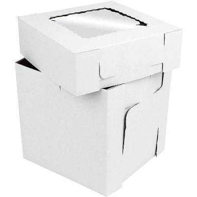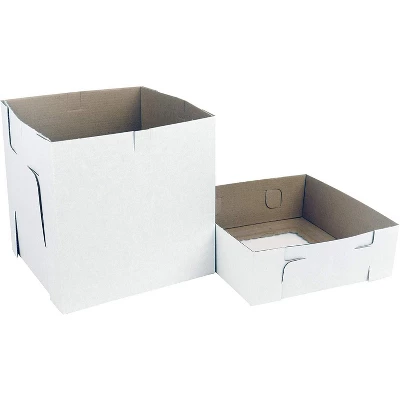 - SIZE and QUANTITY: 25 pack of 8inx8inx8in square 2 piece cake carrier boxes, enough for all your pastry packaging needs. The perfect size to fit average size cakes, tall cakes, and the special gift you can fit in a 8x8x8. Boxes store flat.