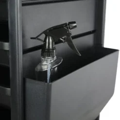 Make your day a little easier with this Professional 4-Drawer Rolling Salon Trolley Station from Chromium by PureSana.This space-saving salon rolling station comes with 4 interior drawers, side compartments, open space for large items, integrated tool holders, and stainless steel bars on both sides. Ideal for holding a variety of tools, this salon organizer has designated areas for specific products. Store your hair stylist supplies in the sliding drawers and side compartments, waxing equipment and esthetician supplies in the open dresser space, and magazines and spray bottles behind the bars. The tool holder keeps dangerous chemicals and sharp objects away from accidental injury or spillage.Quiet when in motion, the 4-wheel base allows for convenient mobility, while the locking casters ensure no unintentional movement, especially around curious kids or animals. The heat-resistant, chrome-plated blow dryer holder and durable plastic construction stand up to any salon environment. This utility organizer is ideal for hair salons, spas, barber shops, tattoo parlors, and office or home studios.Alleviate some daily stress by knowing where all your tools are with the PureSana Chromium Professional 4-Drawer Rolling Salon Trolley Station.
