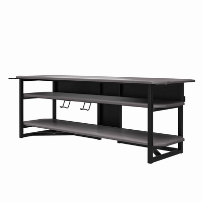 NTense Gamers unite! The NTense Quest Gaming TV Stand for TVs up to 65” brings the party to you with room for all you gaming gadgets. You’ve got 5+ gaming systems? We’ve got you covered. This two-tier stand can hold it all, while keeping two controllers, and two headsets neatly hung and protected from the front and sides of this bad boy. No more searching between the couch cushions for controllers when it’s go time or cringing with fear when your buddy accidentally steps on your headset. We thought you’d like that. Saving friendships, we do that too. Made of painted MDF with a sturdy powder coated metal frame, this gaming control center has enough HP to go the distance. the NTense Quest Gaming TV Stand will look slick against all your gaming components. Store your systems, games, controllers, headsets, and big screen TV on the stand that does it all. Once that’s all out of the way, the only thing left to do is slay. Game on.