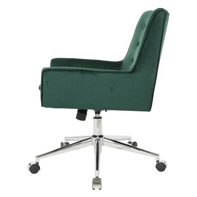 A little bit modern and a little retro, the Quinn Office Chair from OSP Home Furnishings™ makes a statement in style. This stunning office chair’s Mid-century modern vibe is complemented by button tufting and a steel metal base in chrome finish. In addition to the attractive design, the comfort this chair provides will make it hard to leave your desk!