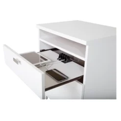 - LIFESTYLE FURNITURE: The nightstand’s 2 deep drawers are finished with a convenient open storage compartment for books above and an open back with cable grip for easy wire management.