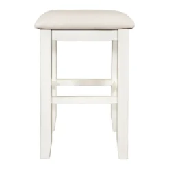 Any corner in your house will crave this 3-piece counter-height wood dining table set. Constructed from a durable MDF panel, the table can load up to 250 pounds, and each stool’s max capacity is 250 pounds. The stools with footrests give you extra relaxation when you enjoy your free time with your beloved. With the combination of two drawers and one shelf, this dining table features ample vertical space for storage and display. It provides a convenient, spacious location to store dinnerware, cookbooks, bottles, and other appliances! With breathable seat cushions in classic beige plus sturdy wood legs, the stools bring timeless appeal and chic sophistication to your space. The combination of a circle of footrests makes the stool stay stable and you can put on your legs for relaxation. Featuring a rectangular shape, this kitchen table set could perfectly fit into any narrow space. It can be used as a cozy bar table, a simple breakfast table, or an island for meal prep. Two stools could be hidden underneath for better utilizing the living space.