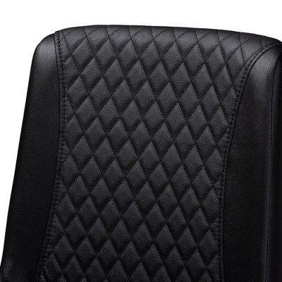 Spruce up your dining space with the chic design of the Pernille dining chair set. Upholstered in a sleek faux leather, the Pernille features a wide, curved seat for the utmost comfort during long dinners. Quilt stitching and piping lend a touch of texture and elegance. Splayed wood legs in a walnut finish provide solid support and channel a charming retro look. The Pernille dining chair set is made in Malaysia and requires assembly. Dimensions: 32.09″ high x 17.32″ wide x 19.88″ deep; Seating dimensions: 15.87″ wide x 14.57″ deep x 18.58″ high (from Floor); Back: 15″ high; Legs: 16.54″ high;