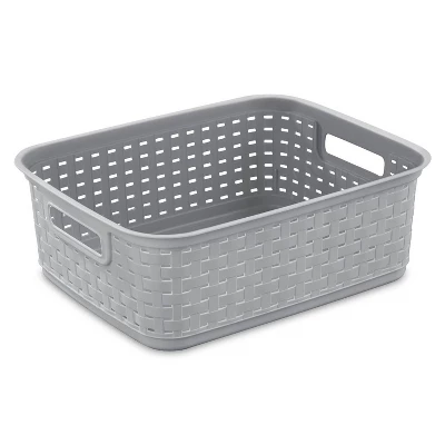 This 6 pack of Sterilite Short Weave Baskets includes 6 decorative wicker-style baskets that are both attractive and durable.The basket size is perfect for storing items lying around the house like magazines, toiletries, or odds and ends. The neutral color complements your home décor.The weave basket combines the trendy look of wicker with the durability of plastic. The basket is easy to clean, waterproof, and has reinforced rims. The handles on either side are comfortable and make it easy to carry.Get attractive and durable laundry baskets – the Sterilite Short Weave Baskets.