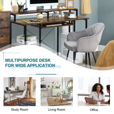 The 47 inch computer desk uses elaborately retro style design, aiming to bring you pleasant visual enjoyment and an efficient office experience. It is designed with a 5″ monitor stand, winning the advantage of providing you with a comfortable viewing angle and relieving your neck fatigue. What’s more, the spacious tabletop and large storage space also cater to your daily working needs. And high-quality engineered wood boards and thickened steel pipes will ensure high sturdiness for longer life span.