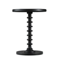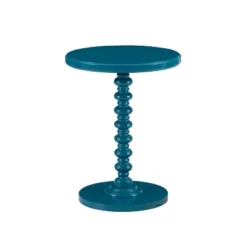 The Teyla Round Spindle Table features a bright, smooth finish and a trendy, stack designed base. Its round edges and classic style will add charm to any space. Sized perfectly to sit next to your favorite chair, the table provides enough space for a lamp or to accommodate household items. Some assembly required.